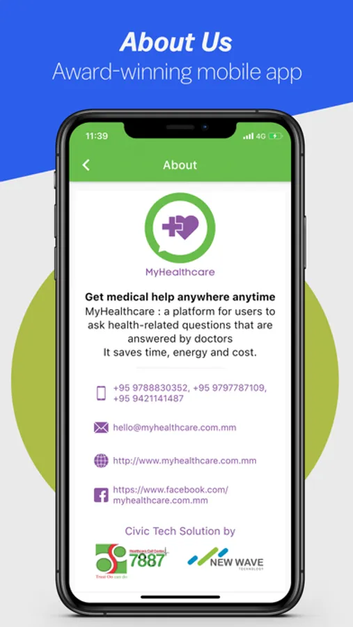 MyHealthcare: The users can consult with doctors round the clock, search for nearest physical healthcare units and give feedback on those at their fingertips. It allows the residents to access quality health information and expertise. For our patient, our services are totally free, if they ask using text message. Apart from phone, age, gender and township, other personal identity information is not collected. Setting own passcode to open this user-friendly app makes it more secure.