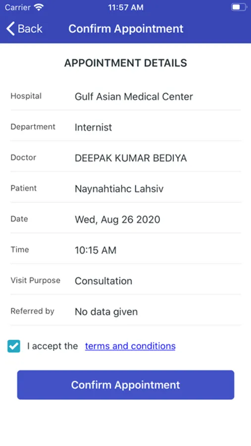 Healthe mobile application by Gulf Asian Medical Center offers appointment booking and online consultation. Linked users can check their medical details.