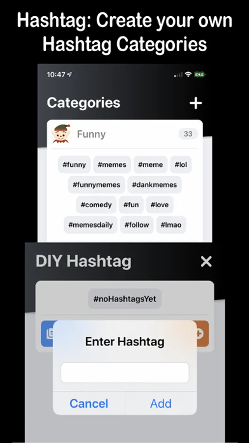 DIY Mode - add your own hashtags to a list and the app will auto group all hashtags in views of 30 hashtags.