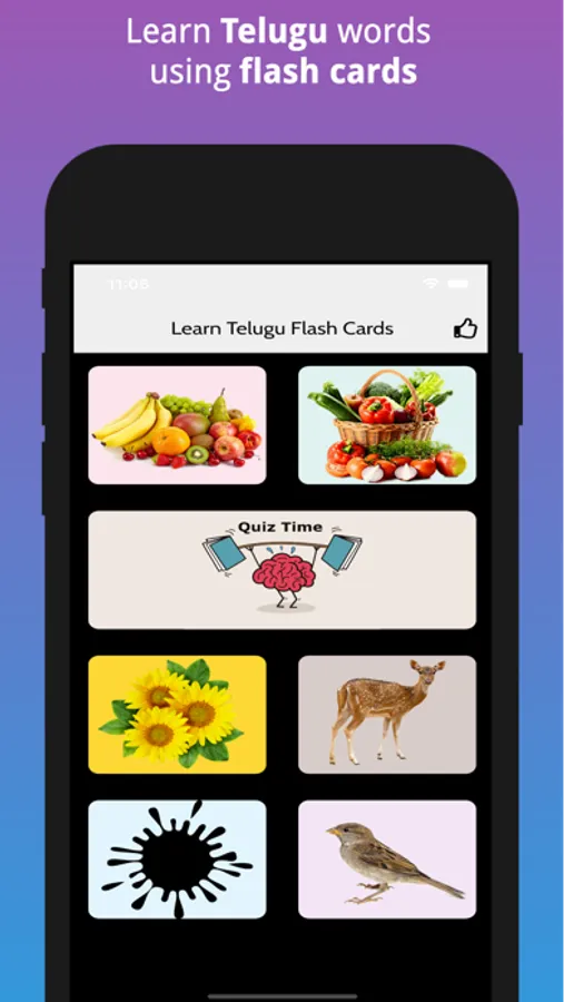 Learn Telugu flash cards for kids App helps to learn Telugu. This app provides basic knowledge on Telugu words. We have six category to Learn Telugu words for free.