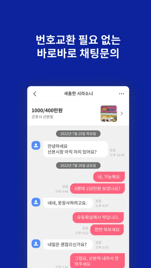 가벼운 문의부터 직거래를 위한 거래 약속까지!