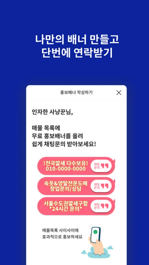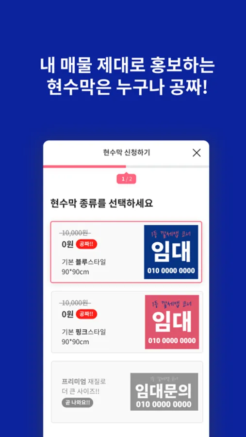 코너 본인 인증만 하면 누구나 하나씩 임대 현수막 발송!