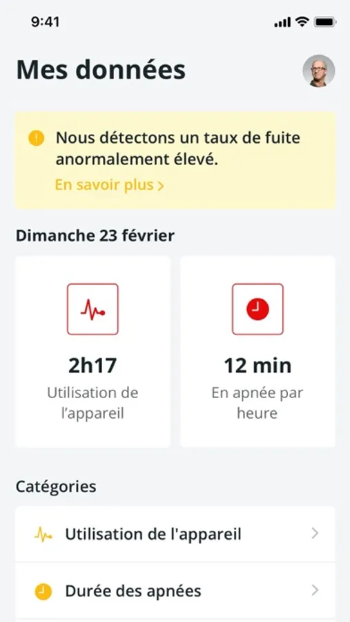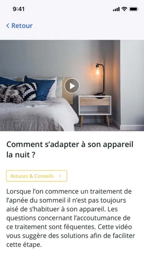 L’assistant personnel NOMAD.care vous accompagne au quotidien à travers l’utilisation de votre appareil respirateur. Vous pourrez ainsi visualiser les données liées à votre utilisation en temps réel, obtenir des statistiques diverses, bénéficier d’un rappel de vos rendez-vous médicaux ou avec un technicien.. Plus encore, découvrez les foires aux questions, et l’onglet vidéos vous permettant d’accéder à du contenu réalisé juste pour vous (exercices de respiration, vidéos conseil, ...)