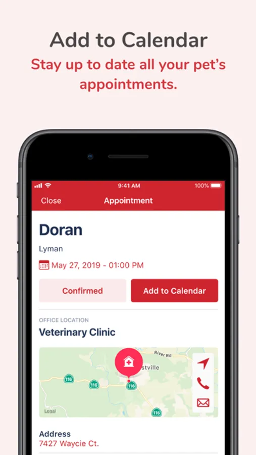 Mobile Veterinary Practice is the new connection between your pets and your favorite veterinary office. Mobile Veterinary Practice features unique technology which allows you to access your pet’s medical records, book real time appointments, request health certificates, and much more. You can even personalize Mobile Veterinary Practice with your own pet photos. You can see a map and directions to your veterinary hospital, and through the Mobile Veterinary Practice app can easily contact your veterinary office. The Mobile Veterinary Practice app is connected to your pet’s records at your veterinary office so it is always up to date.