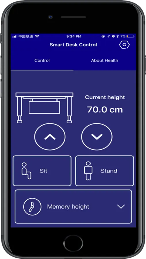 The application controls the automatic height control of the desktop, and controls and monitors the activities through the smartphone.