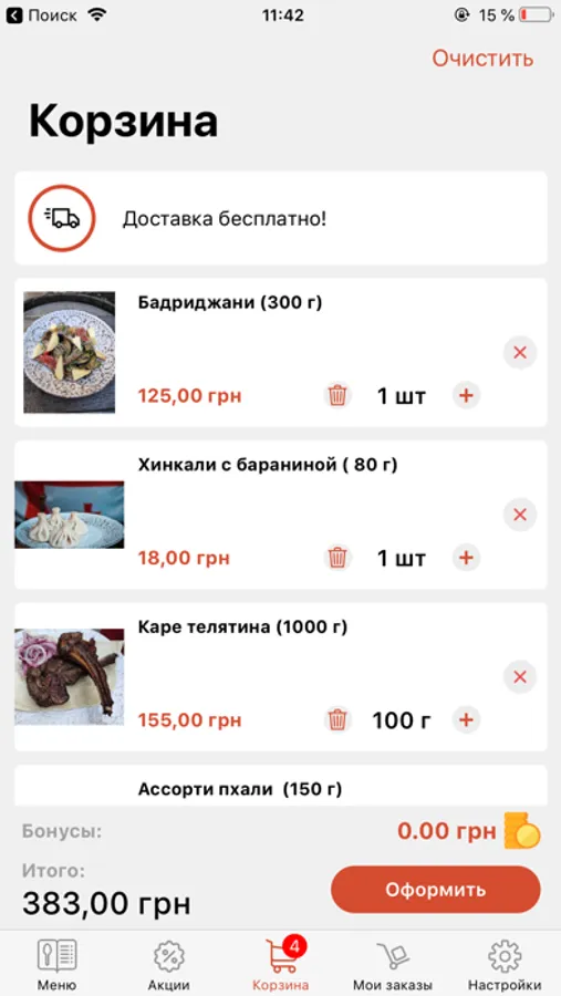 Используя мобильное приложение Sufra, Вы с легкостью можете заказать горячие блюда, хинкали, хачапури на любой вкус и размер. Доступные в приложении сортировка по цене, подробные описания и качественные фотографии блюд помогут Вам выбрать именно то, что Вы хотите.