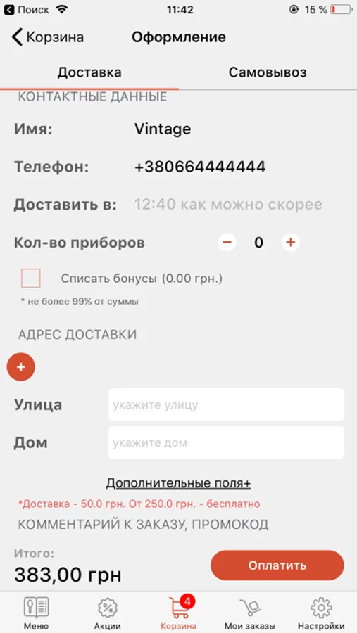 - установить время, в которое Вы бы хотели забрать заказ из нашего заведения;