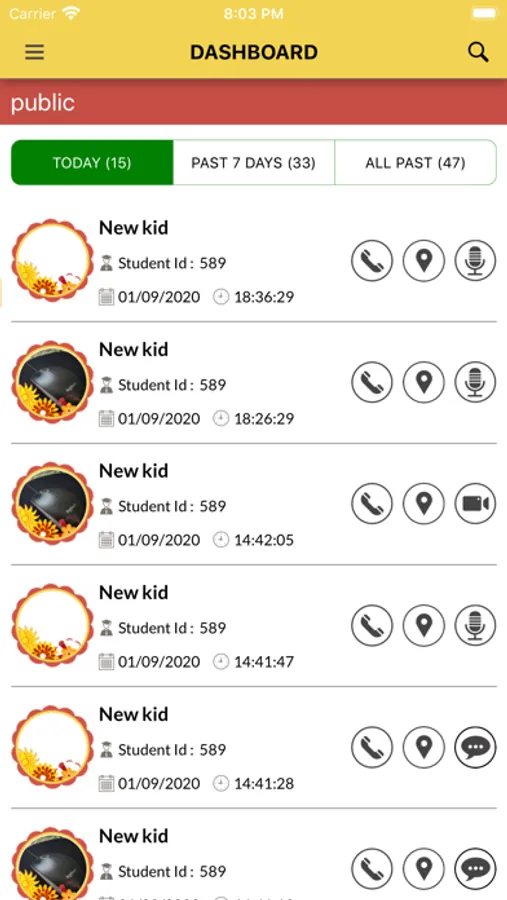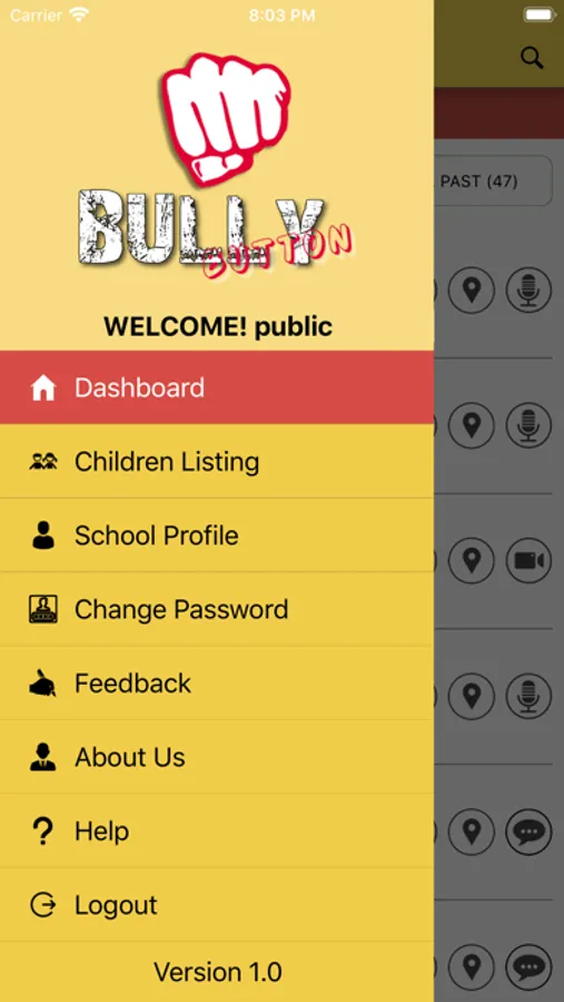 - The dashboard of the parent app will show all the bully records recorded so far by his/her kids while, the dashboard of the School app will show all the bully records recorded by the kids in the school.