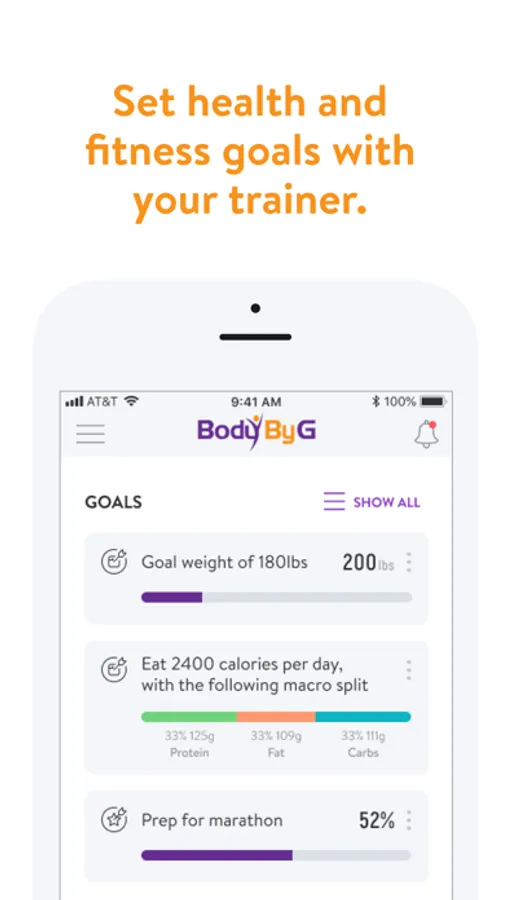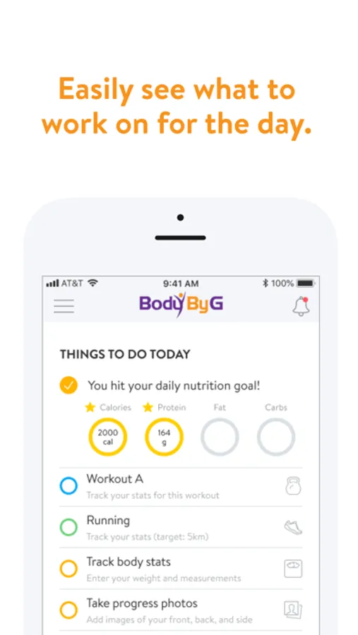 With the Body By G App, you can start tracking your workouts and meals, measuring results, and achieving your fitness goals, all with the help of your personal trainer.