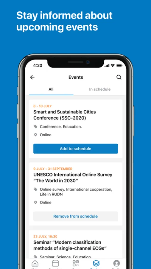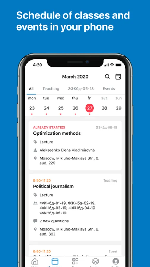 You can get information about schedule, different events at university and latest news easily. There is an electronic pass to the university in your smartphone.