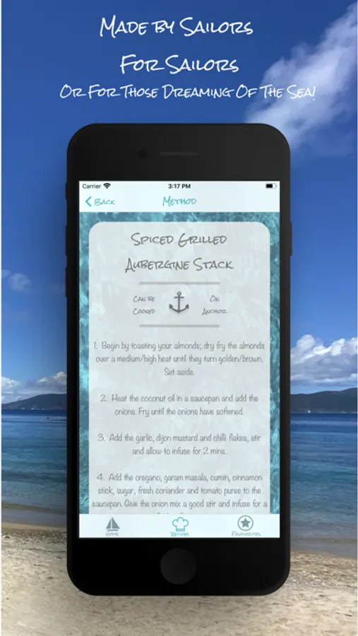 52 recipes which can be created in any small galley/kitchen. All recipes have been created in a traditional boat kitchen consisting of a 3 ring gas burner and the dreaded un-even temperature gas boat oven. Along with some of my favourite gadgets such as a blender and “Simon” the sous vide!
