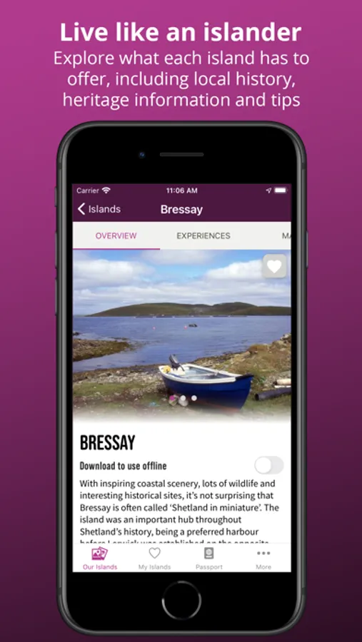 The Scottish Islands Passport app is your passport to collecting island stamps! Use the passport to explore the diverse landscapes and communities on 72 of Scotland’s inhabited islands and discover your next adventure. Get local tips on fantastic island produce, beautiful beaches, historic sites, outdoor activities and the thriving arts and cultural scene.