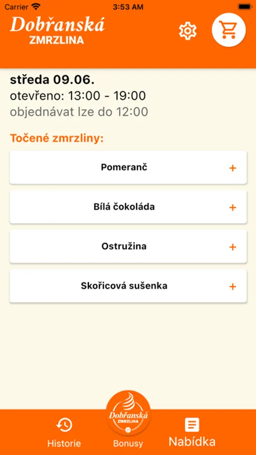 Aplikace pro objednávání zmrzliny ve stánku Dobřanská Zmrzlina