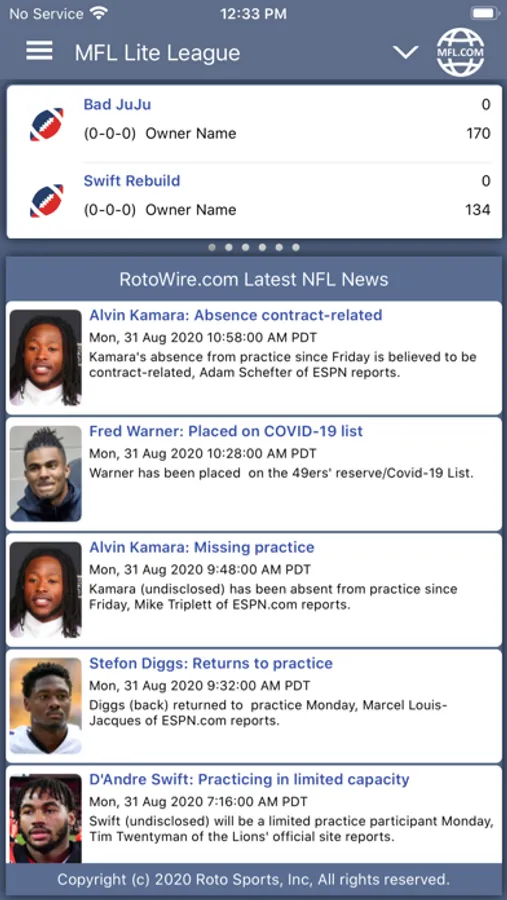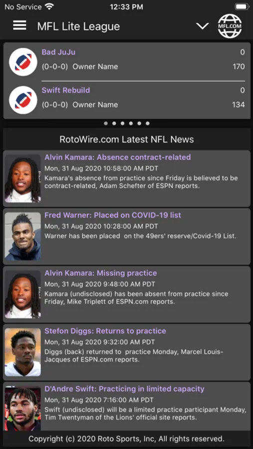 • Streamlined roster management. Set lineup, IR, Taxi-Squad, and tiebreakers from a single location.