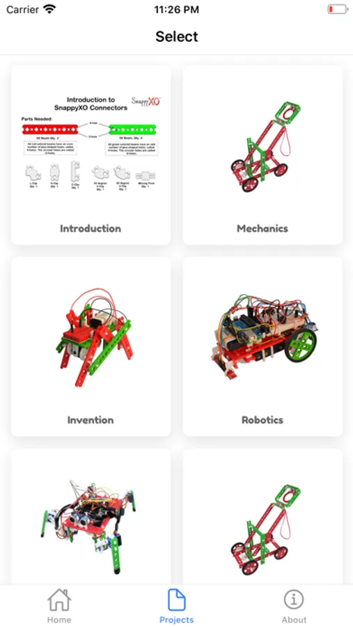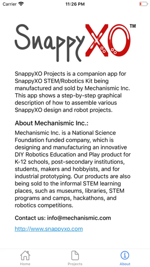 SnappyXO Projects is a companion app for SnappyXO STEM/Robotics Kit being manufactured and sold by Mechanismic Inc. This app shows a step-by-step graphical description of how to assemble various SnappyXO design and robot projects.