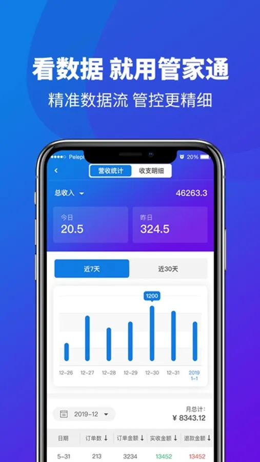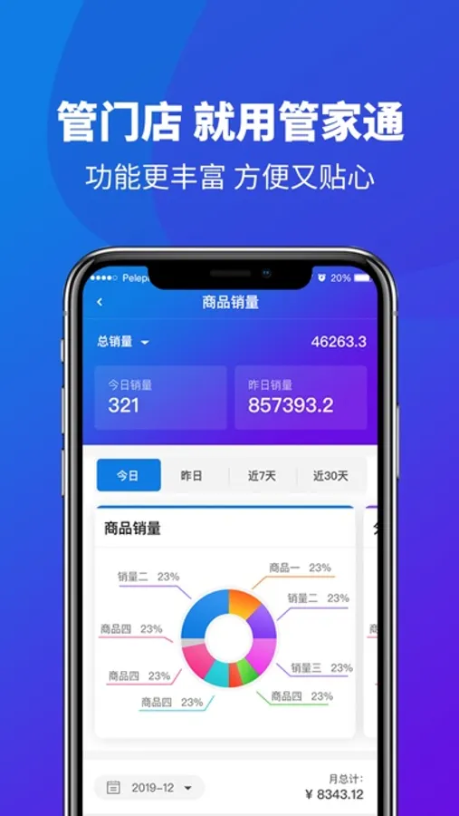 商家使用掌上管家通,更快更好的管理门店;傻瓜式操作,掌上云办公;精准数据流,管控更精细;功能更丰富,商家管理门店查看数据方便又贴心。