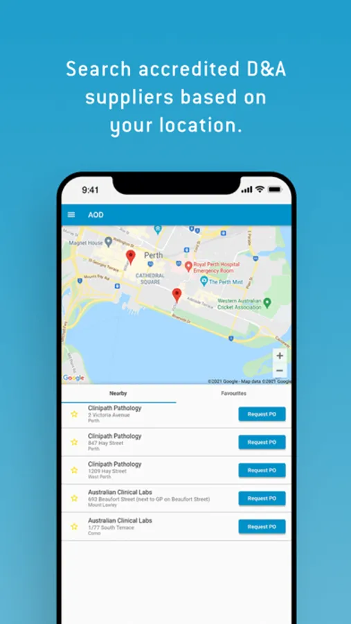 • Search accredited D&A suppliers based on your location.