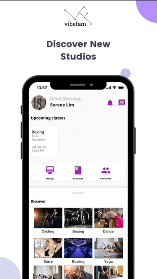 vibefam makes it easy for you to discover fitness studios and experiences that you like.