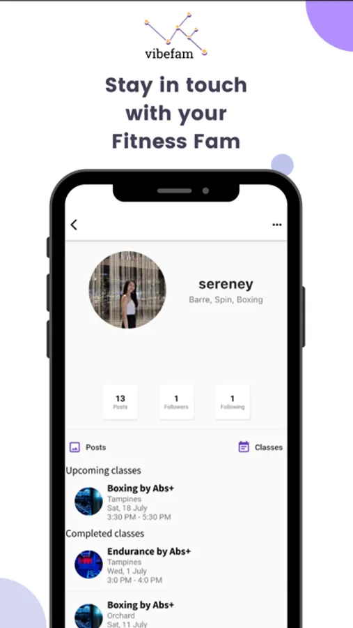 Find a fitness buddy that you really vibe with in class? Connect with them on vibefam - a community built for the boutique fitness junkie.