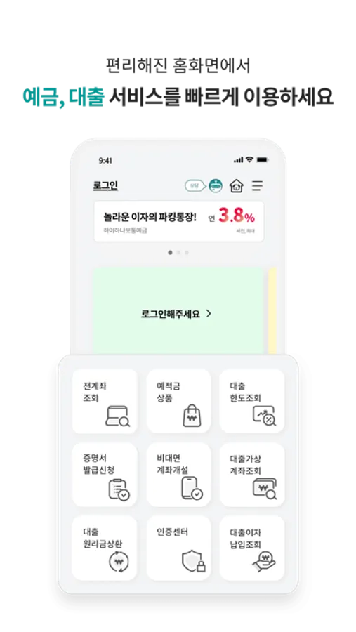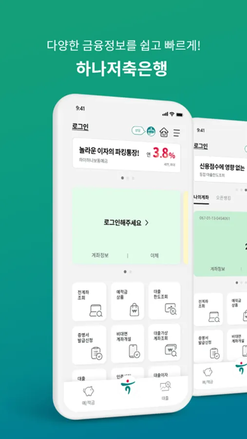 - 하나저축은행은 보안강화, 앱 업데이트 등의 이유로 손님의 개인정보나 금융정보를 요구하지 않습니다.