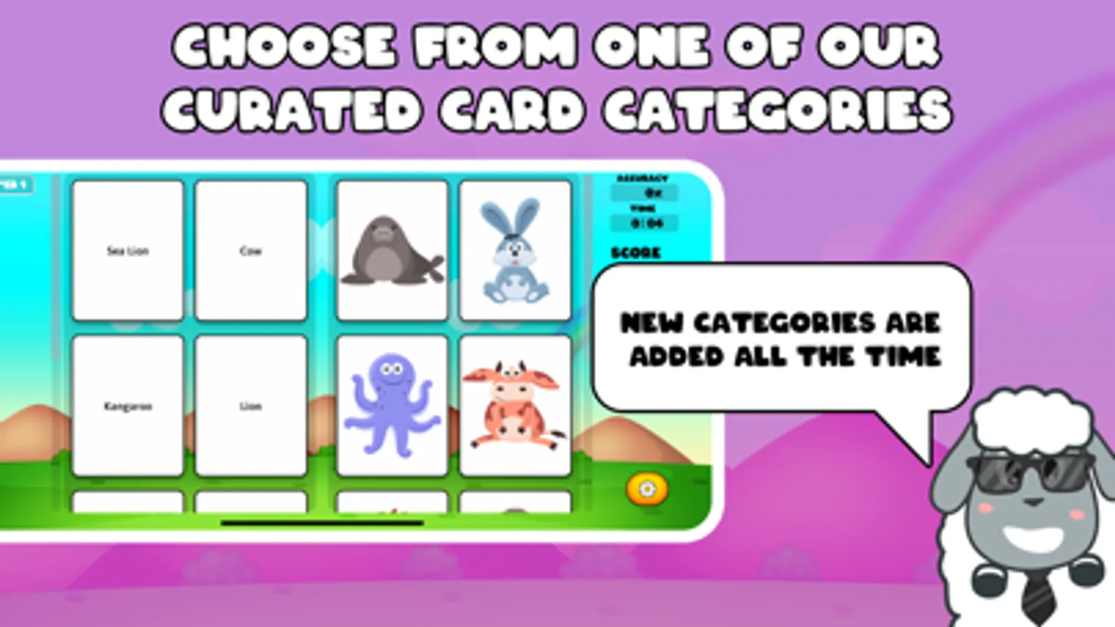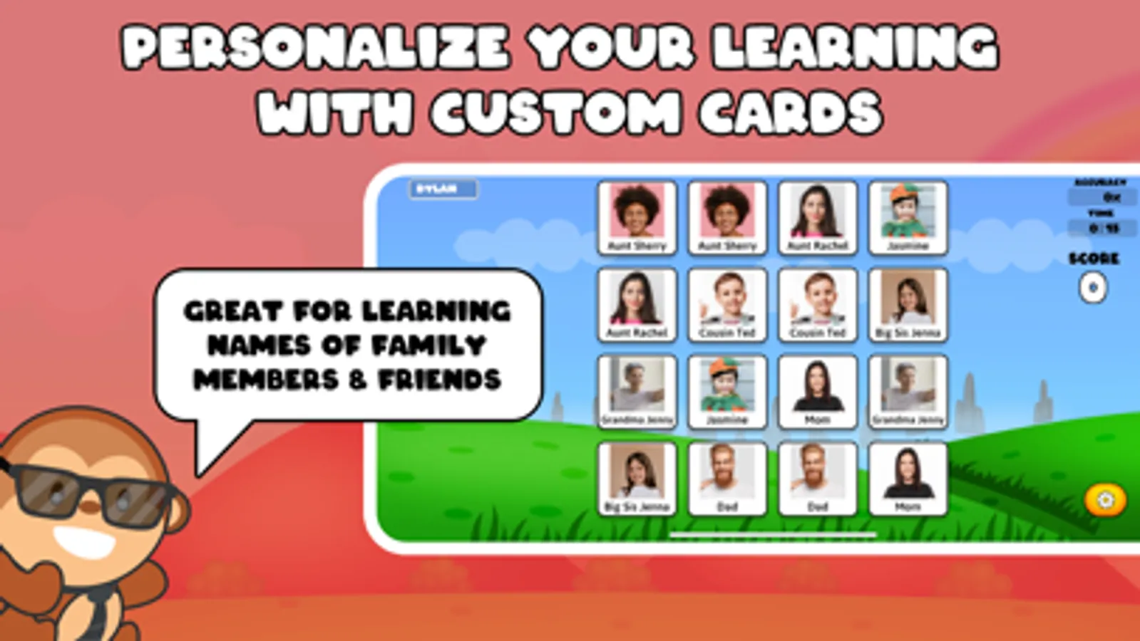 An entertaining card matching game that teaches your child to recognize, speak and write new words and objects. Select from a list of carefully curated categories, such as alphabets and numbers or create a category to include personalized cards such as family members, relatives, friends and pets.