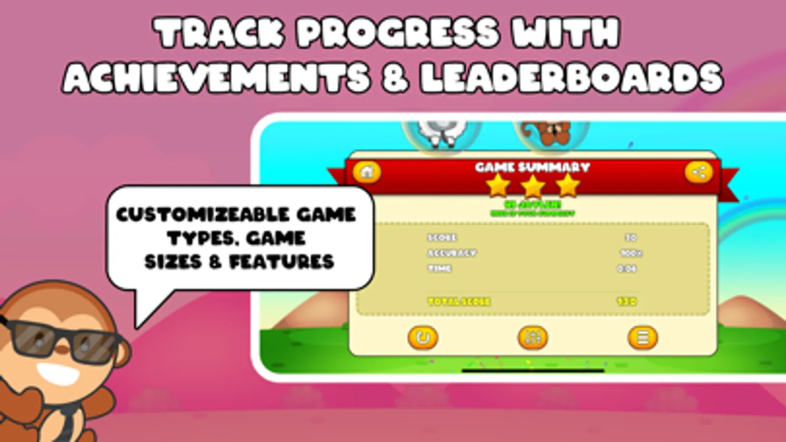 Track your child's progress and keep them engaged with achievements and performance tracking. Set your own difficulty level by adjusting settings such as, open or closed faced cards, card match games or list games (matching a word to an image of that word), the number of cards per game as well as voice and card labels.