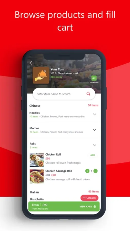 Browse products and fill cart: Customers can browse products by categories or stores. This means that customers can enjoy variety whilst vendors can maintain individuality and brand presence.