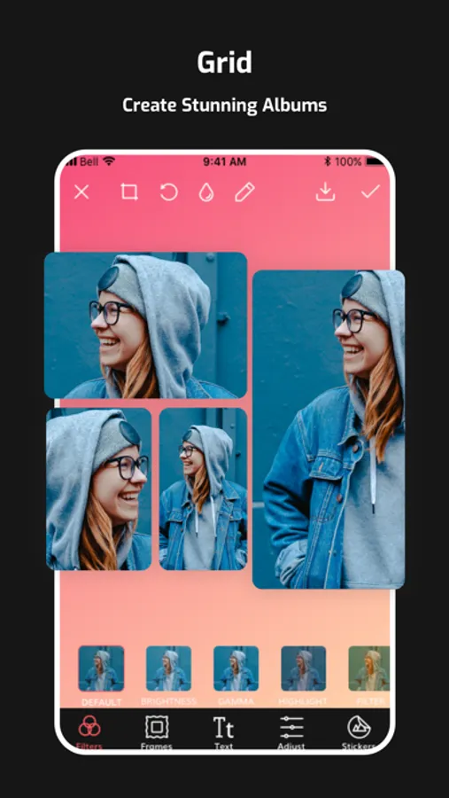 You do not need photoshop anymore to edit your photos. This unique photo editor app provides cool photo editing effects and tools just like advanced photoshop. The app contains amazing features that make your photos look beautiful in just a few seconds. Most of the image presets and filters are similar or better than other apps. You can crop photos, add filters, blur photos, add stickers, add texts, choose colored brushes and do much more on this photo editor.
