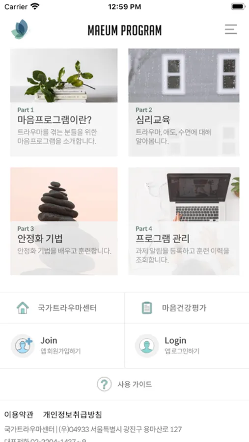 - 기타 : 국가트라우마센터 홈페이지 및 마음건강평가 연결