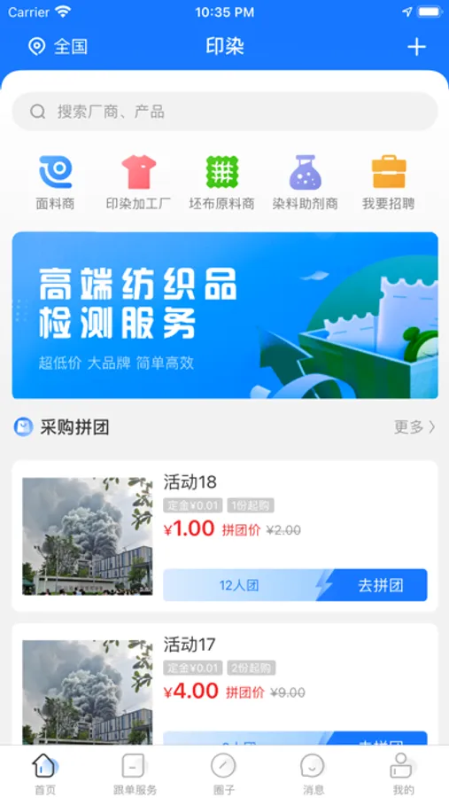 专属于印染、纺织、面料且与之相关联的智能化信息交流、交易平台!让您的成本,获客、招聘等更具优势!线下拥有的由多年印染厂厂长带队非常专业的印染跟单队伍为您的面料生产保驾护航!