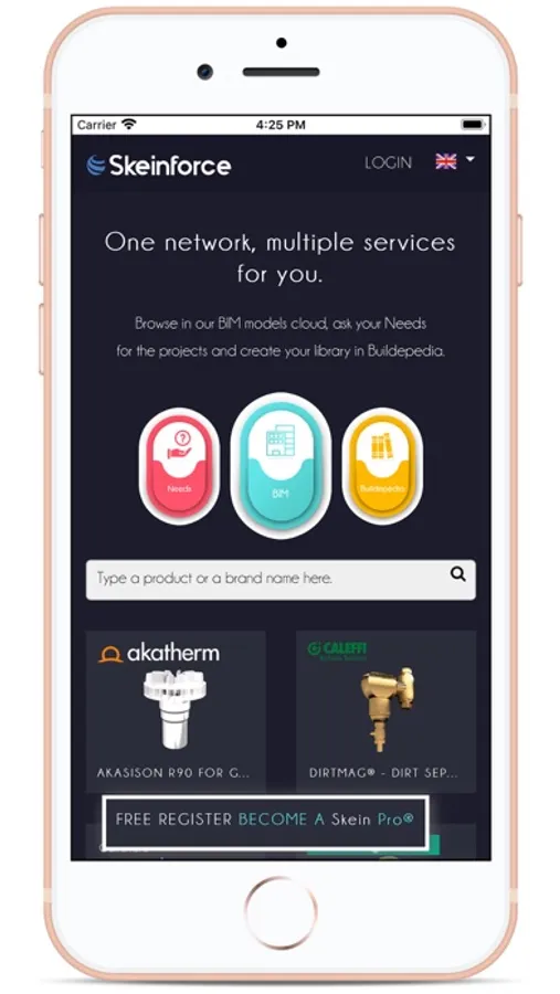 Skeinforce is the first online communication platform between the main players in the construction sector. In Skeinforce the designer, architect and contractor can download the best BIM models, all the technical documentation in Buildepedia and ask for support and quotes related to companies with Needs. Everything with one single account.