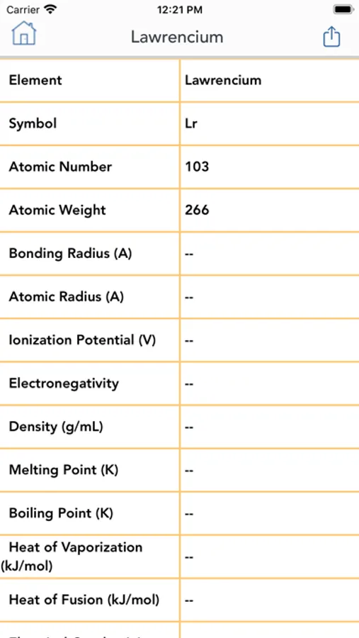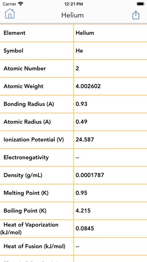 All the chemical information about each and every element can be shared to social media, mail, messages and other sharing apps.