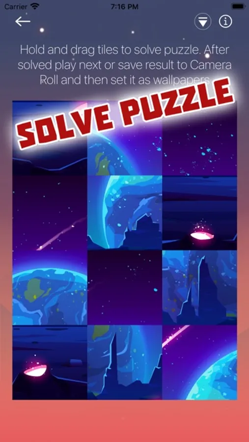 Play simple drag-and-drop game to solve puzzle, save result as wallpapers and enjoy it everyday!