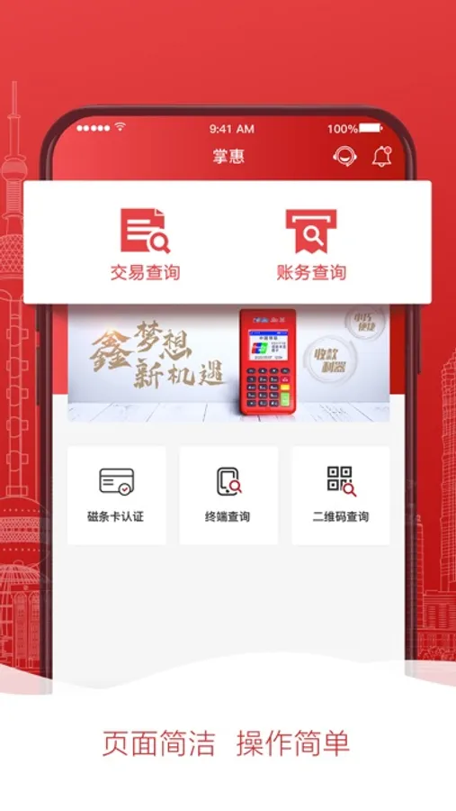 掌惠可为商户提供注册进件、机具绑定等服务,同时可对交易明细、账户余额、账务流水等进行查询操作,并具备数据统计功能。后期还将上线手机收款等功能,旨在为企业及个人客户打造稳定、安全、便捷的收款利器。