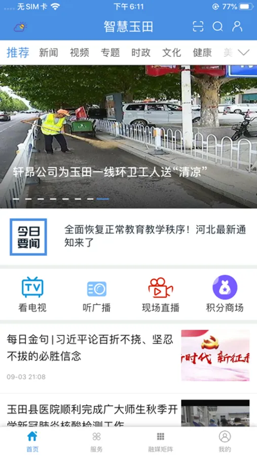 智慧玉田是玉田融媒体中心整合本地广播、电视、直播节目、党建、政务资讯、医疗教育、交通信息、旅游美食、社会民生、文化影视等综合功能的APP应用。