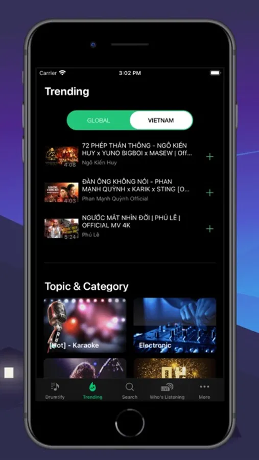Drumtify supports you to listen to music and watch videos while in use of Facebook, Zalo, Skype, Tiktok... or other applications with the PiP (Picture in Picture) feature.