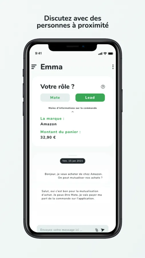 · Maintenant que vous avez un partenaire d'achat, vous avez le choix d'être Lead ou Mate. Lead passe la commande et reçoit la livraison à son adresse. Mate participe en payant sa part de l'achat sur le portefeuille digital de LiVert et déverrouille le montant pour Lead après avoir reçu sa commande.