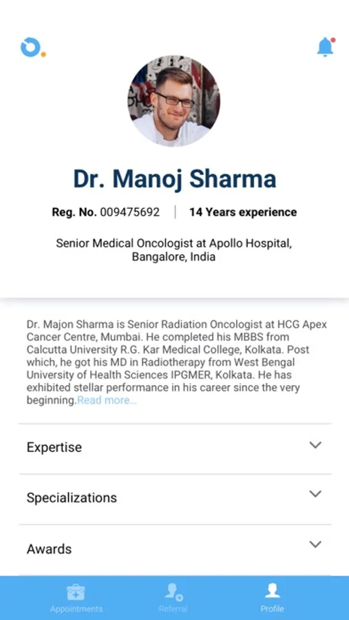 Onco Doctors app also allows oncologists to manage their profile and keep the information updated.