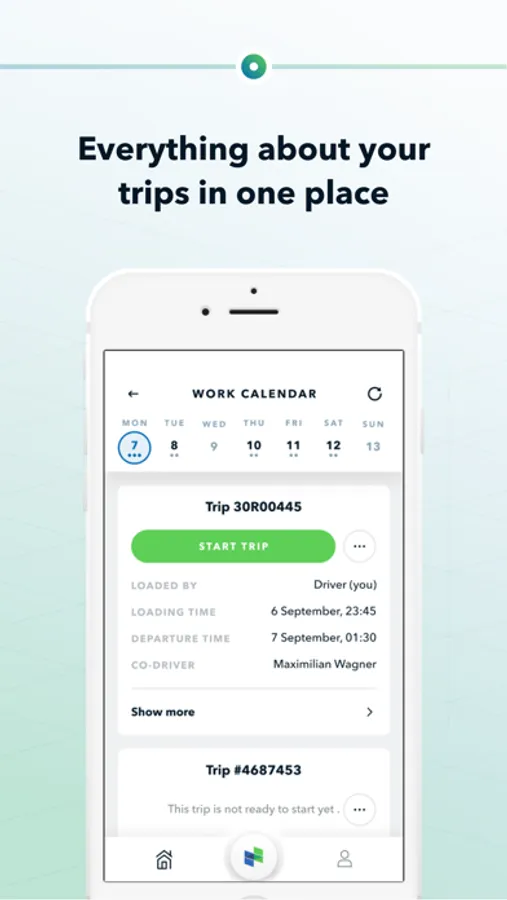 In Your route – the home page of the app – you can handle everything concerning your current trip. Run through the departure procedure, handle delivery tasks, and complete your trip when you’re done.