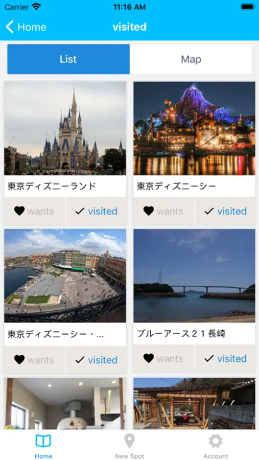 行きたいところを登録しておくことで、実際に行った際の記録や、友達への共有にも使えます。