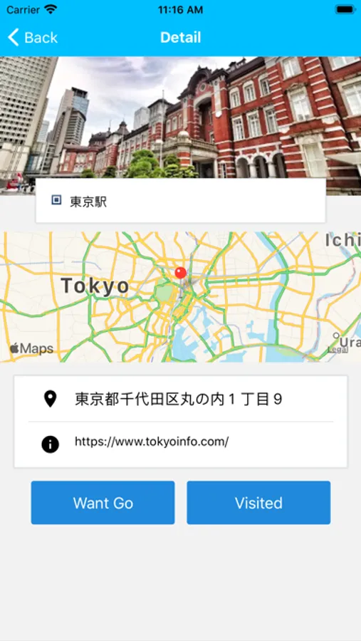 行きたい場所を登録、訪れた場所の情報を管理する旅行記アプリです