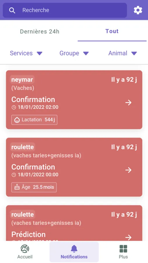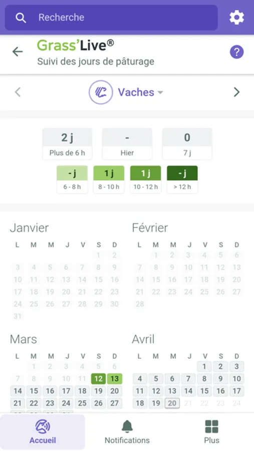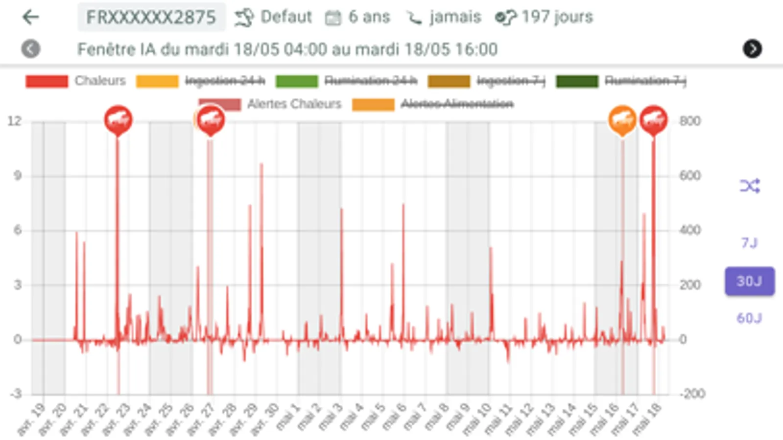 En un seul clic accédez aux détails de chaque alerte : observez les courbes d’activités de vos animaux en temps réel, anticipez vos vêlages et ne perdez aucune information grâce au récapitulatif de toutes les alertes reçues.