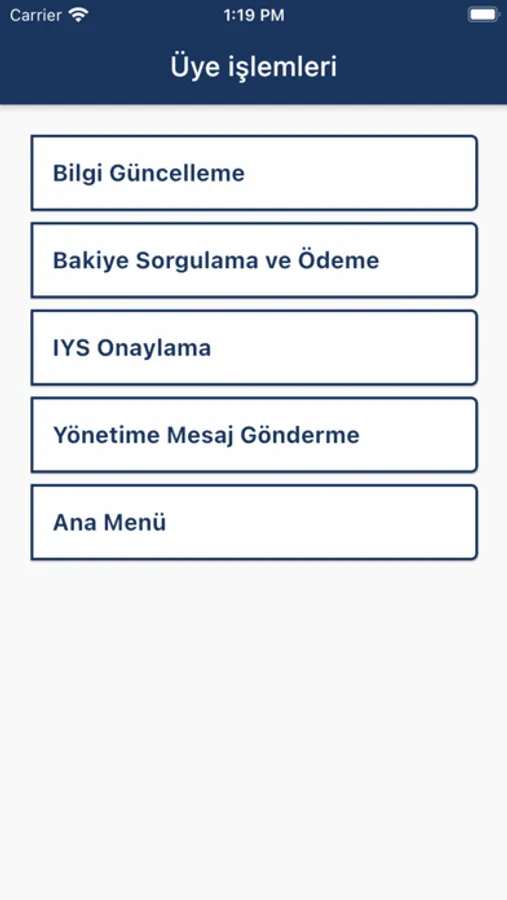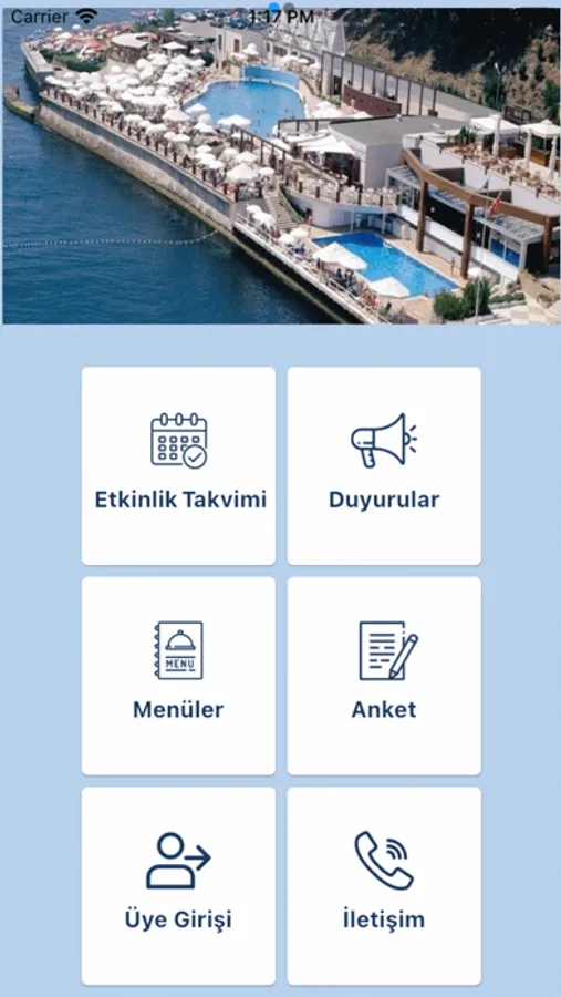 Moda Deniz Kulübü Info uygulaması, Etkinlikler, Duyurular, Günün Menüsü, İletişim, Anket, Üye İlişkileri