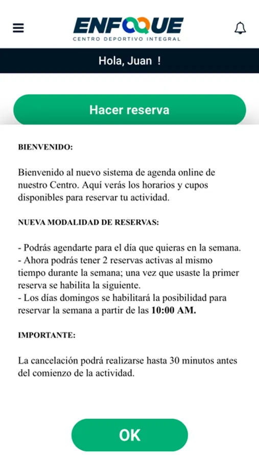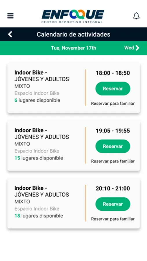 Reserve your sports activities in the ENFOQUE center.