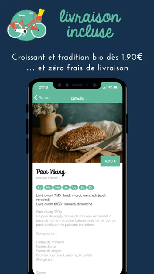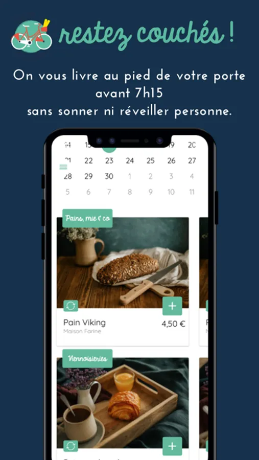 Baguette à Bicyclette livre du pain frais, des viennoiseries et d’autres douceurs tous les matins devant votre porte sans vous réveiller.
