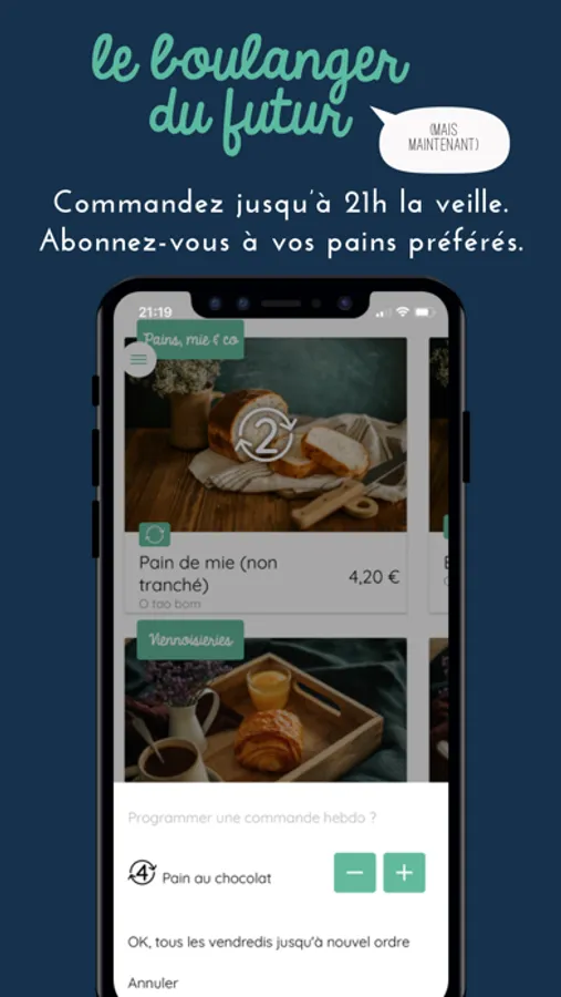 Une application simple et intuitive pour vous faciliter le quotidien : programmer ses commandes, les ajuster et s’abonner à des commandes récurrentes.