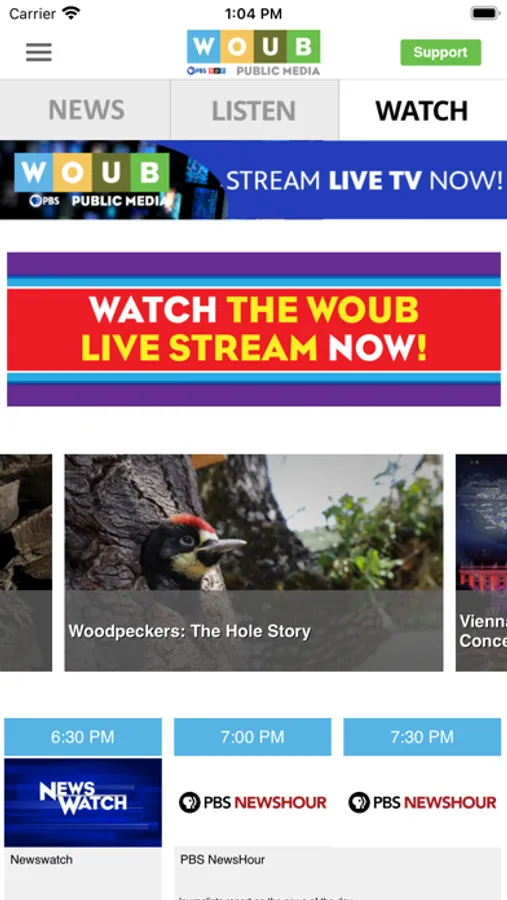 • Listen to live streams from WOUB even while traveling! Start the app and your favorite station starts playing. Watch PBS programs easily from your device, no matter where you are.