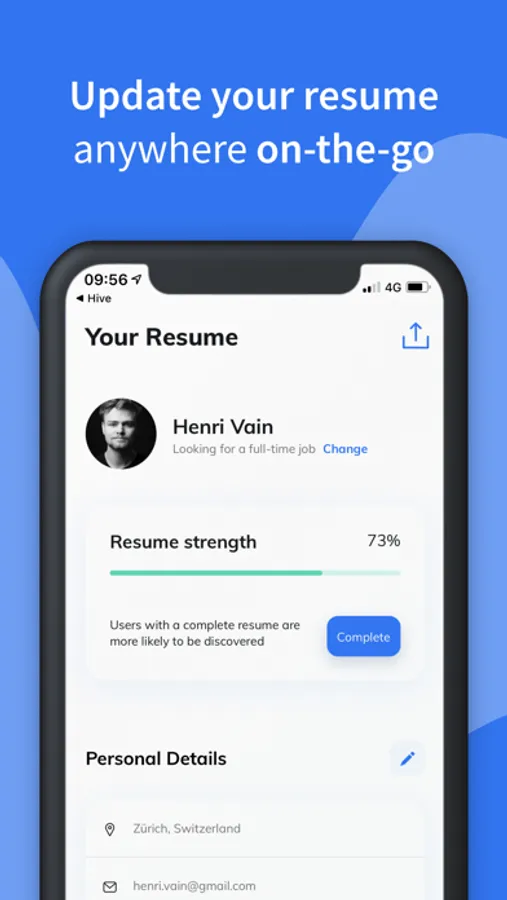 Forget desktops and Word docs. We’ll guide you step-by-step to create a professional resume within minutes from your mobile phone.