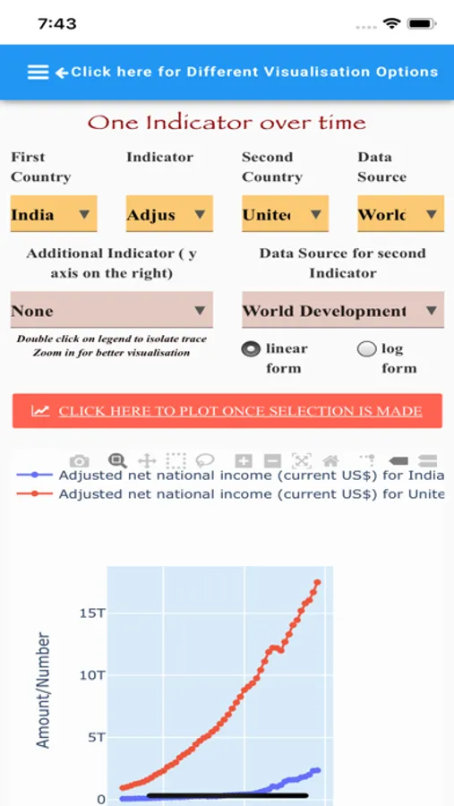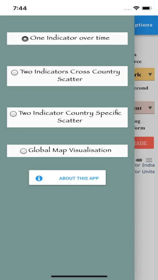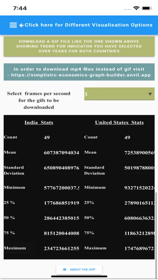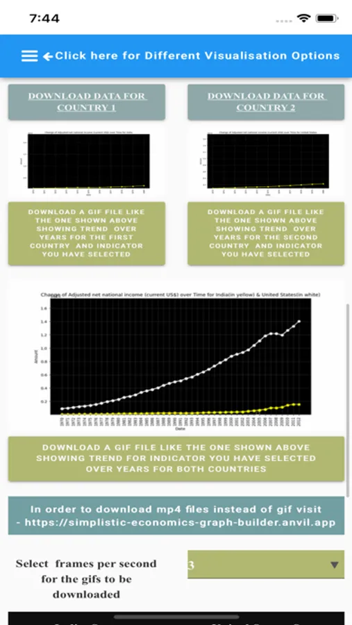 The user can also download the data and interactive visualisations. Furthermore, the app provides three crucial visualisation options which are time series, cross country scatter and country specific over time scatter.