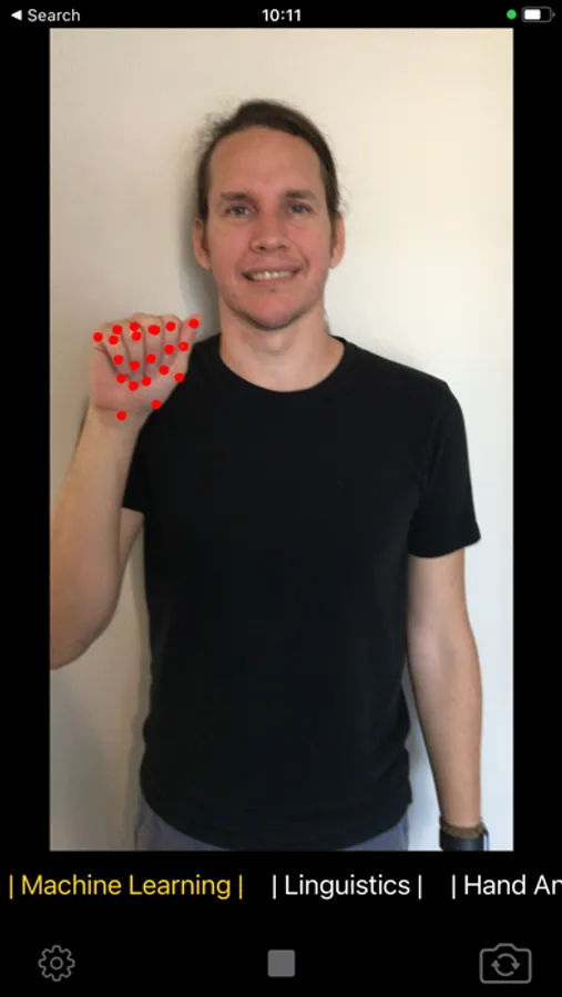 For linguistics, the hand pose are determined by finger curls. If the finger is curled, the text description will be popped up in the UI. When the recording is on, the video will be used to stream into three CSV files.